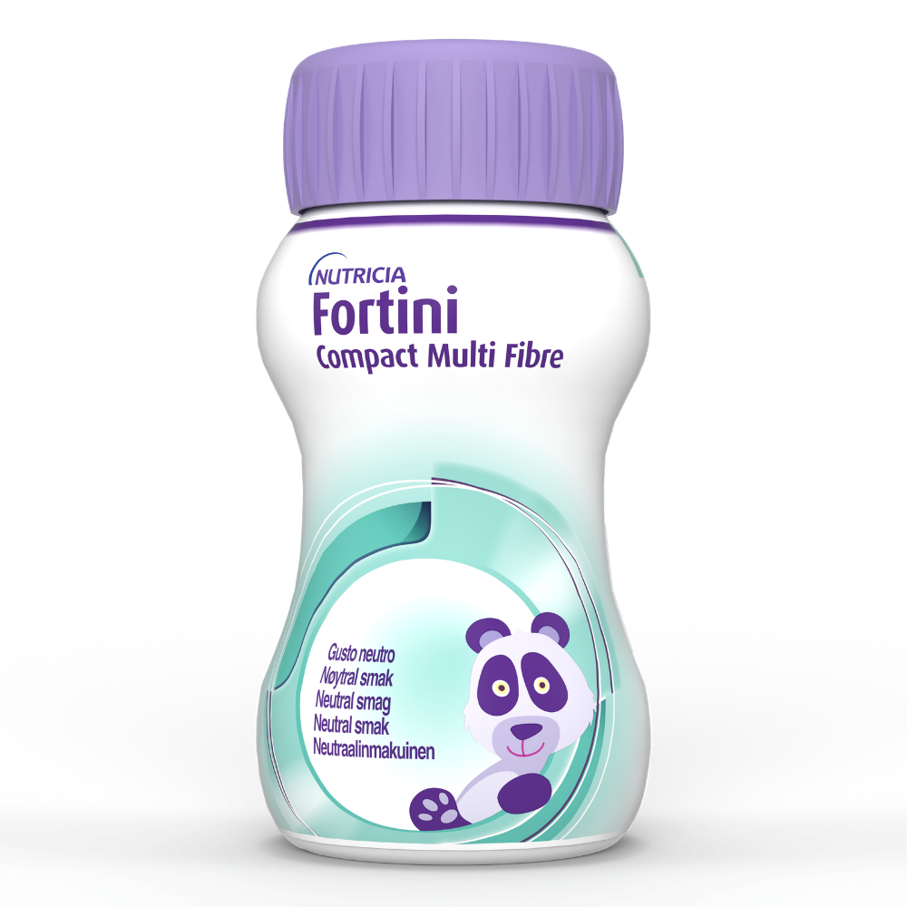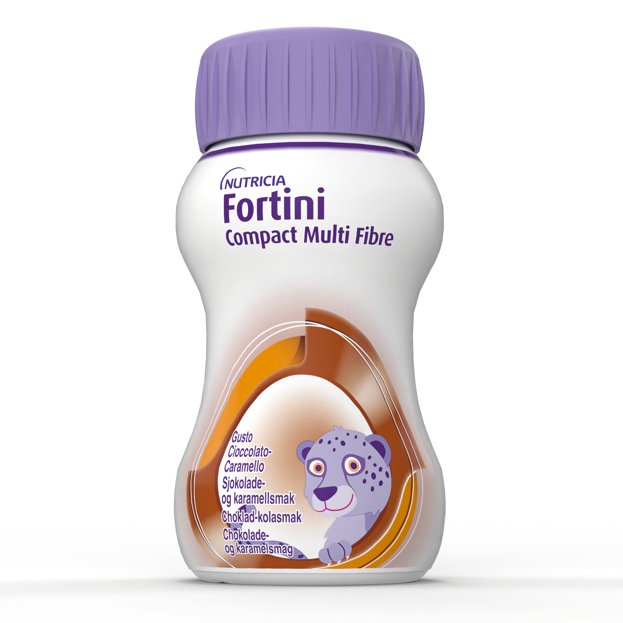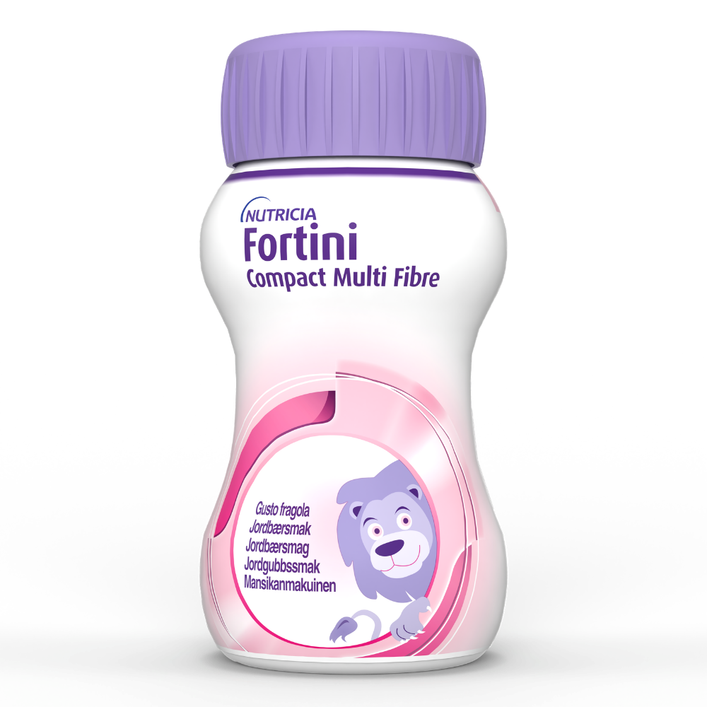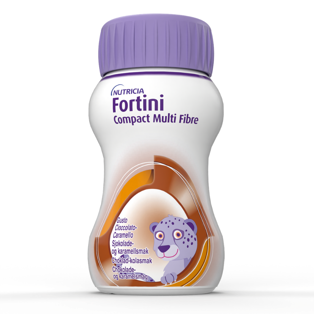 Fortini Compact Multi Fibre är en kompakt milkshake-liknande näringsdryck som finns i 3 goda smaker. Den lilla flaskan (125 ml) innehåller lika mycket näring och energi som en Fortini Multi Fibre 200 ml gör, vilket gör den särskilt lämplig för barn som har svårt att inta större volymer.