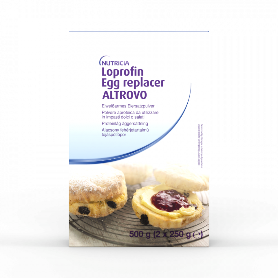 Loprofin äggersättning kan användas som ersättning för ägg vid bakning och matlagning och är baserat på potatis- och tapiokastärkelse. Det är gluten-, mjölk-, laktos-, ägg-, och sojafritt. En förpackning (2×250 g) motsvarar ungefär 100 ägg.